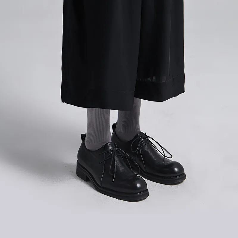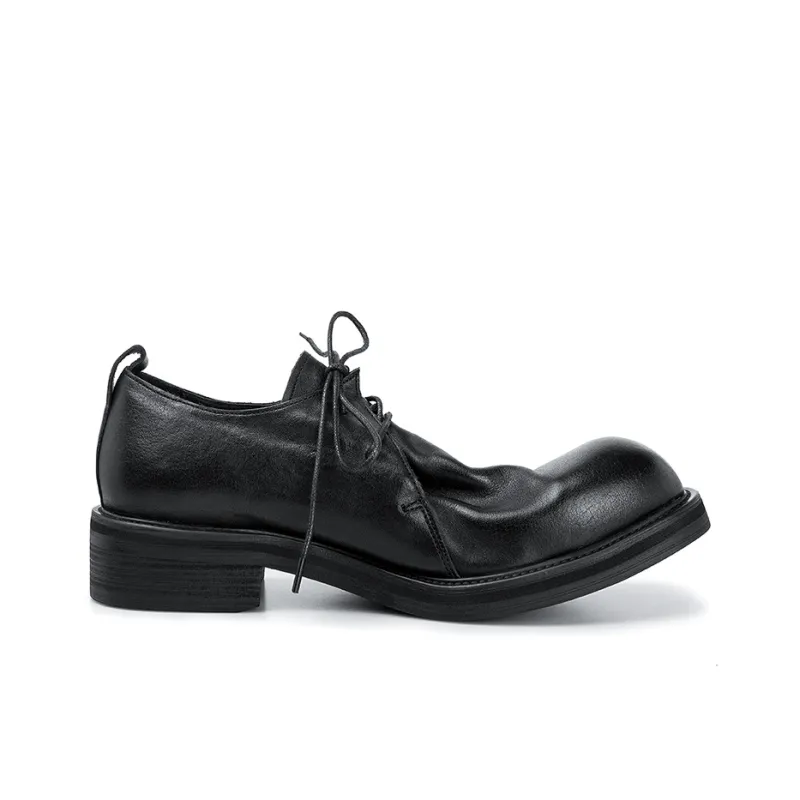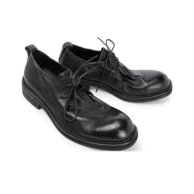 HUANXIANGZHE Японский стиль Круглый носок Платформа Натуральная кожа Кэжуал Мужской Черный