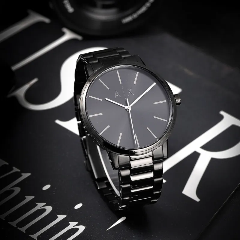 ARMANI EXCHANGE AE ARMANI Мужские часы Кварцевый механизм Ремешок из нержавеющей стали Черный циферблат