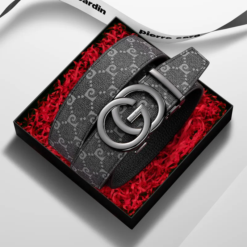 PIERRE CARDIN ПВХ Подарочный набор с ремнем Мужской Черный 3,5CM