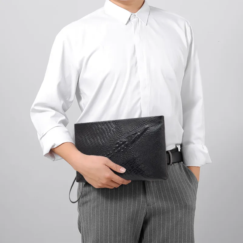 Old Man's Head Клатч из крупнозернистой текстуры коровьей кожи стандартный мужской черный