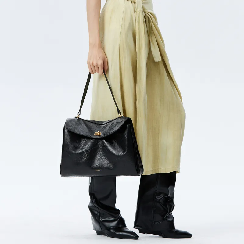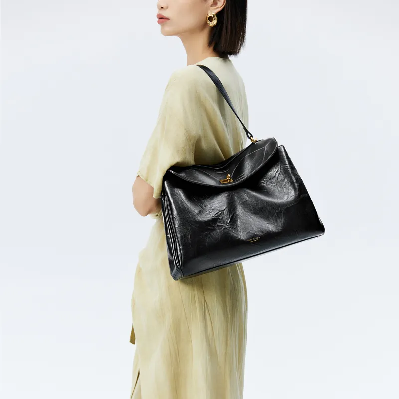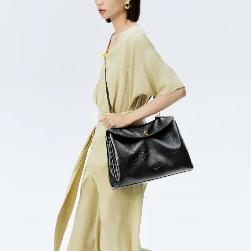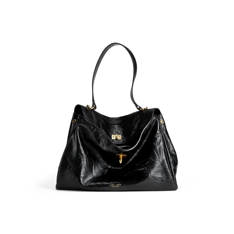 PIERRE CARDIN Натуральная кожа большая вместимость сумка через плечо женская черная