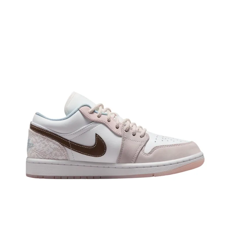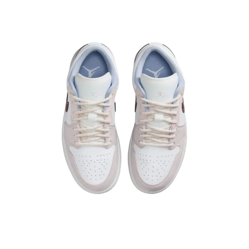 Jordan Air Jordan 1 Противоскользящие Износостойкие Низкие Баскетбольные Кроссовки Женские Белые Розовые