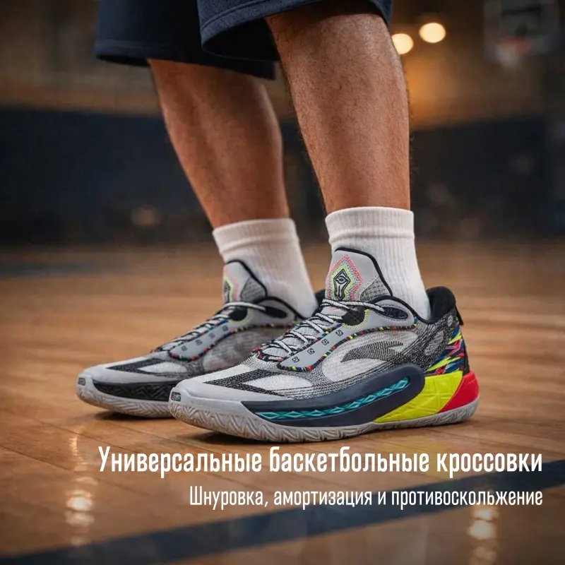 Anta Shock Wave 6 Амортизация Противоскользящие Устойчивые к износу MID Топ Баскетбольные кроссовки Мужские Серый Черный