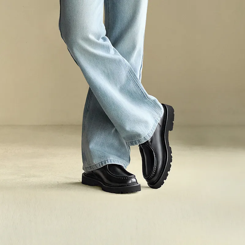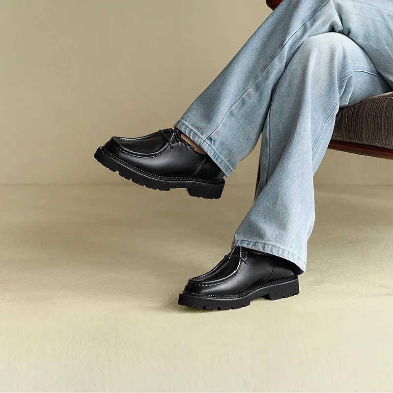THOM WILLS - THOM WILLS Винтажный британский стиль Телячья кожа Обувь Kangaroo Повседневная обувь Мужская Черная