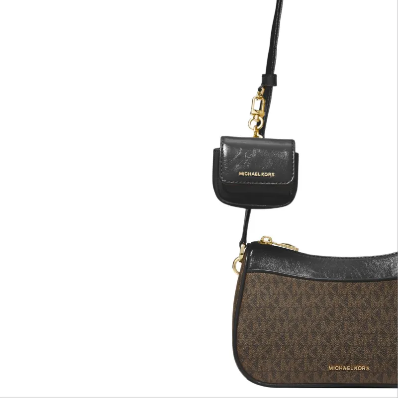 MICHAEL KORS Jet Set Искусственная кожа с коровьей кожей Сумка через плечо Средняя Женская Темно-коричневый Черный