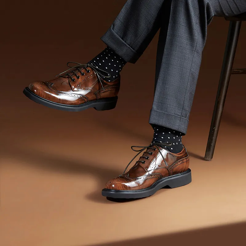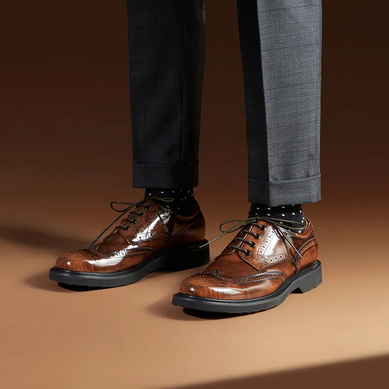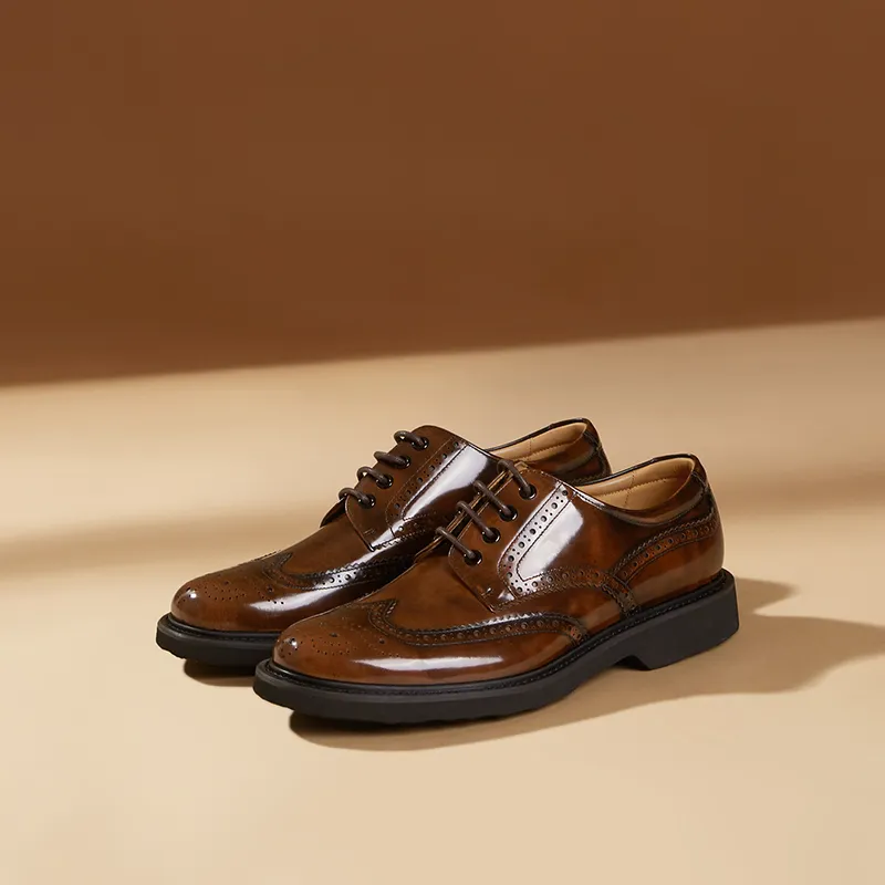 THOM WILLS - THOM WILLS Британский Бизнес Повседневная Обувь Derby из Телячьей Кожи Мужские Туфли Желто-Коричневые Полированные