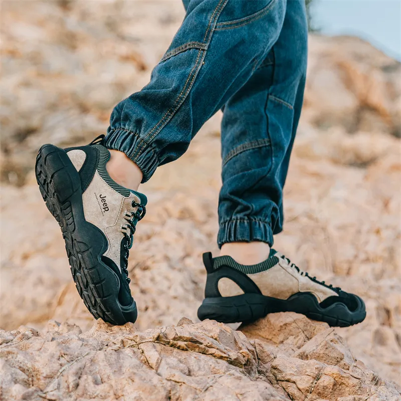 Jeep Дышащая Влагоотводящая Низкий Верх Походная Обувь Мужская Песочный