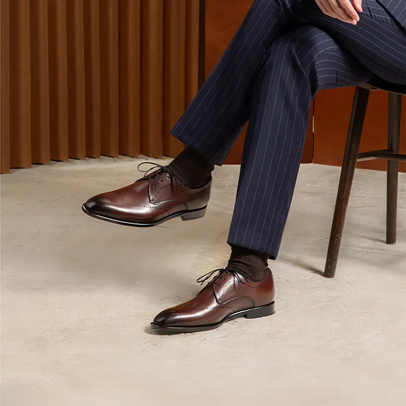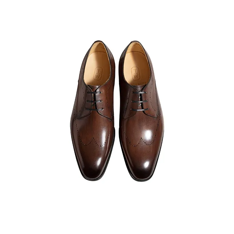 THOM WILLS Британский стиль Бизнес Телячья кожа Дерби Обувь Туфли Мужские Темно-коричневые Полированные