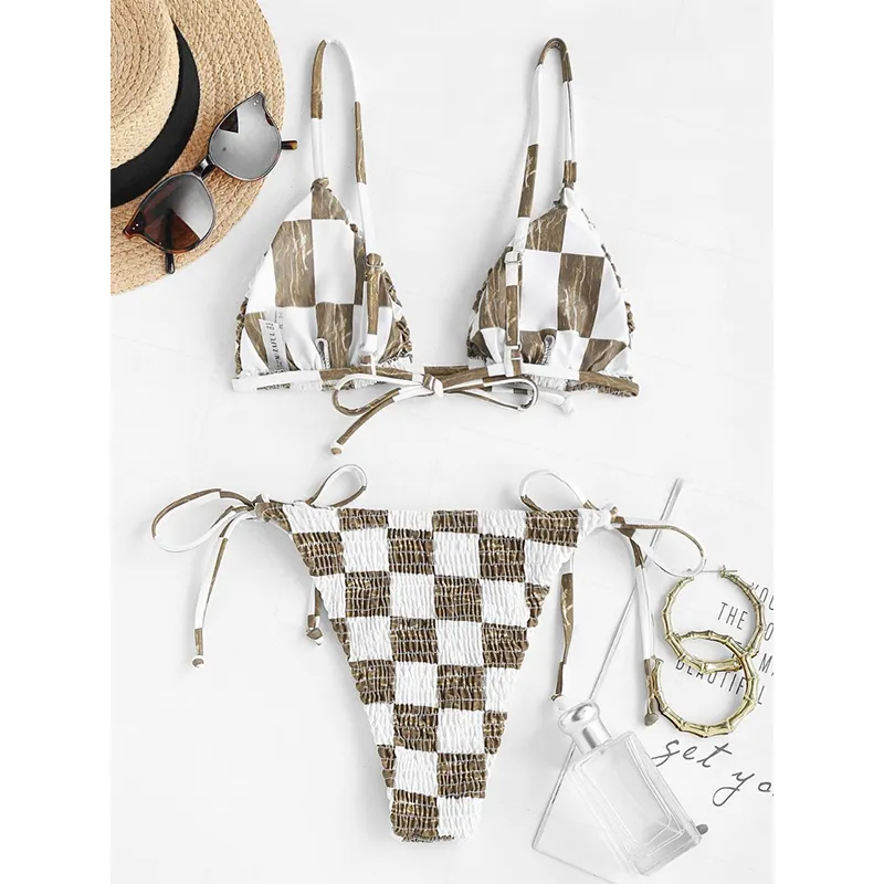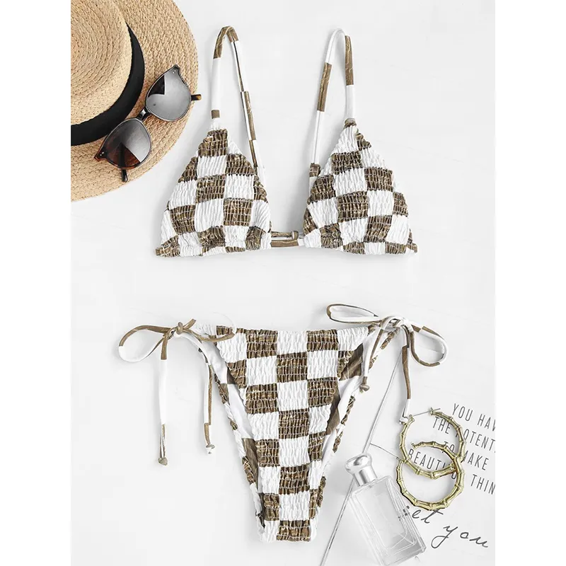 MUQINGQING - MUQINGQING Шахматный узор с принтом женские бикини с подкладкой