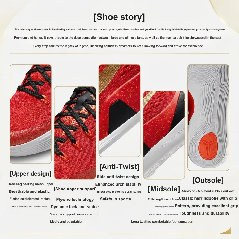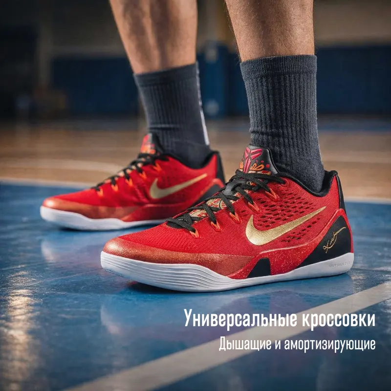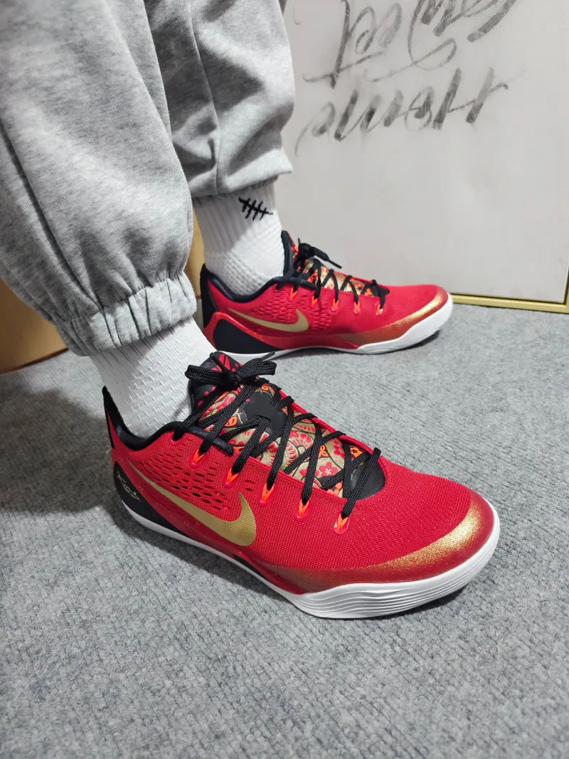 Nike Kobe 9 Дышащие Отскок Сцепление Низкие Баскетбольные Кроссовки Мужские Красный Черный