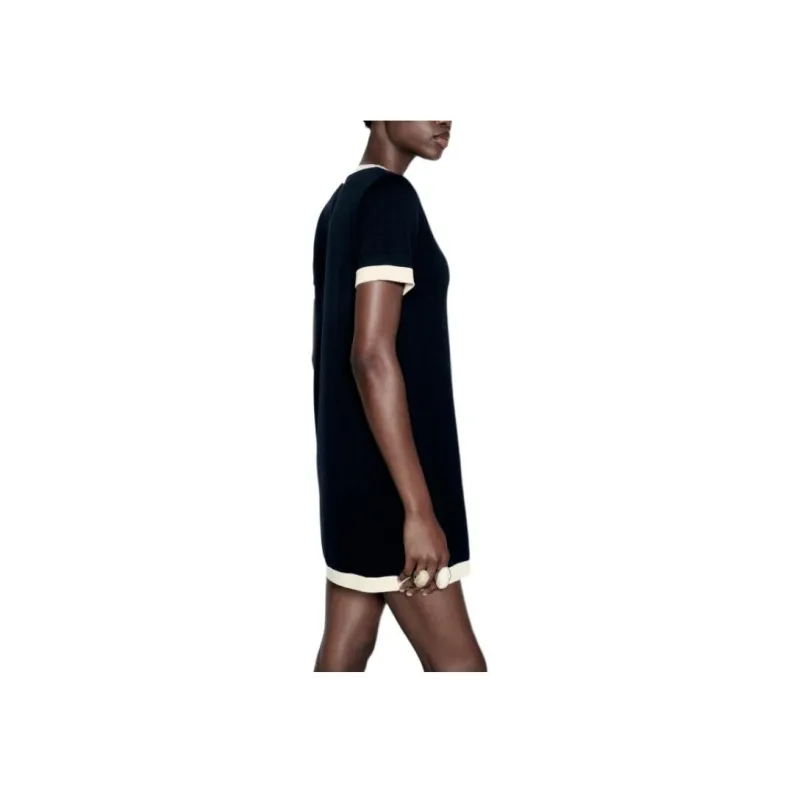 ZARA Короткое платье с короткими рукавами женское морской синий телесный