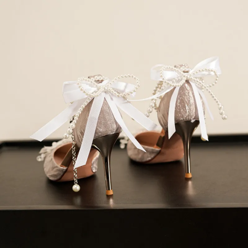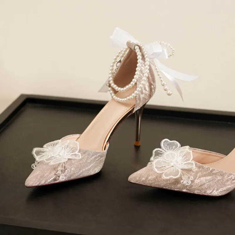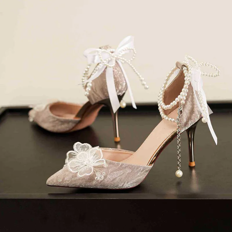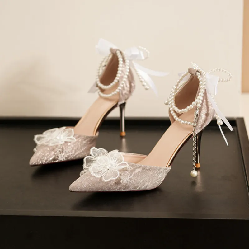 Lanza Абсолютно Страстный Мода Французский Цветочный Бант Яркий Заостренный носок Бусины Кисточка Сатин Мягкий