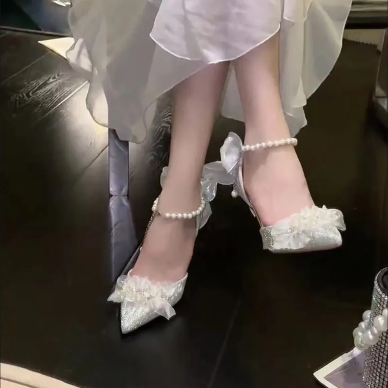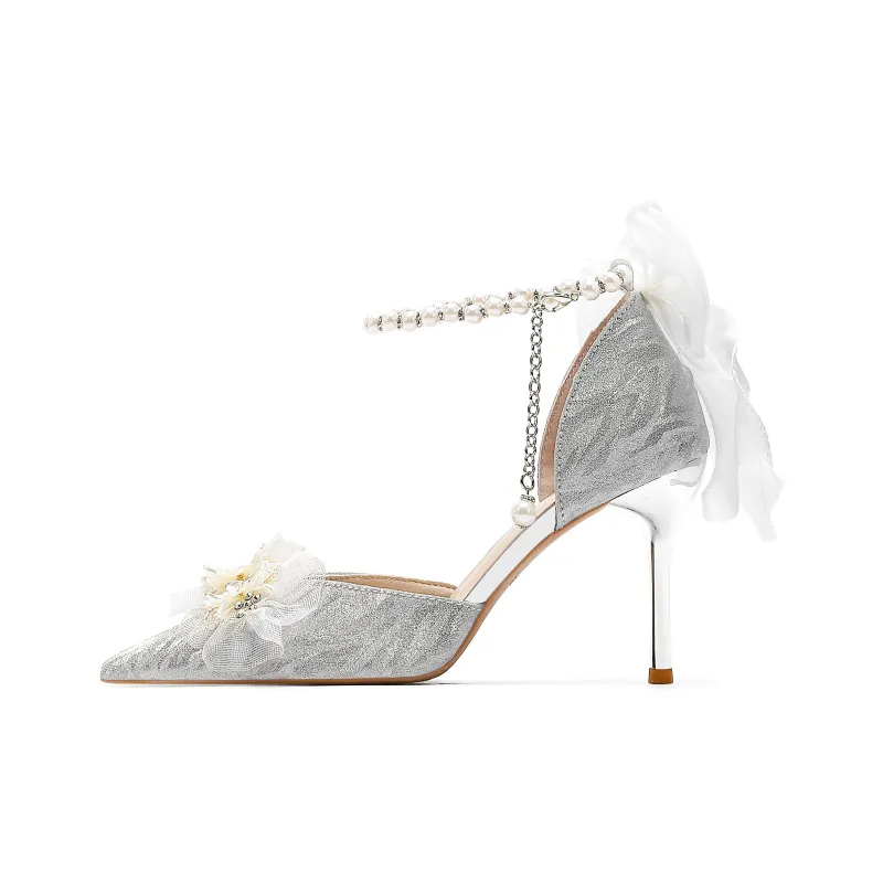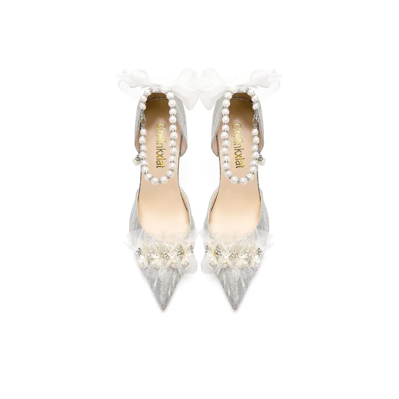 Crelinkxlat - Crelinkxlat Звездный свет Глазурь Жемчужный бантик Кристальная обувь Свадебная обувь ПУ (полиуретан) Высокие каблуки