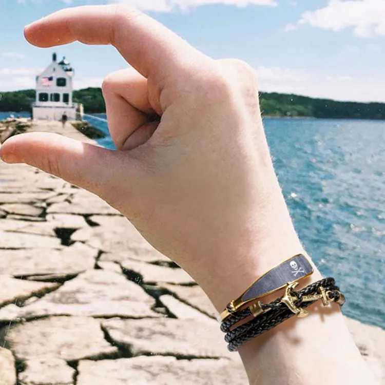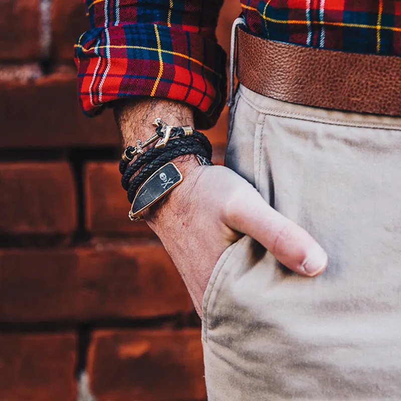 Kiel James Patrick - Kiel James Patrick Кожа Винтажный Желтый Brass Bracelets Унисекс Черный