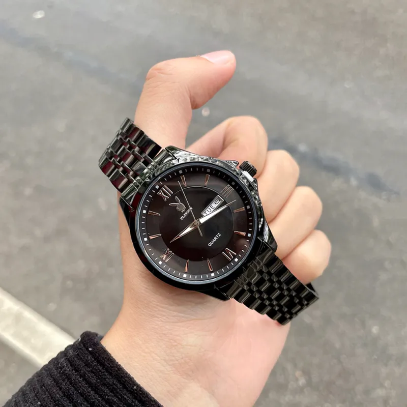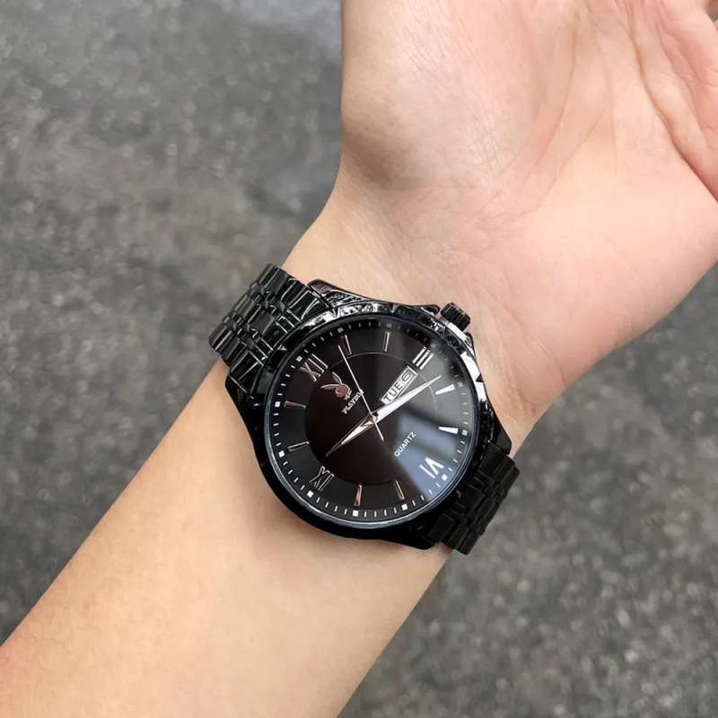 Playboy Кварцевый механизм стальной ремешок мужские часы белый циферблат