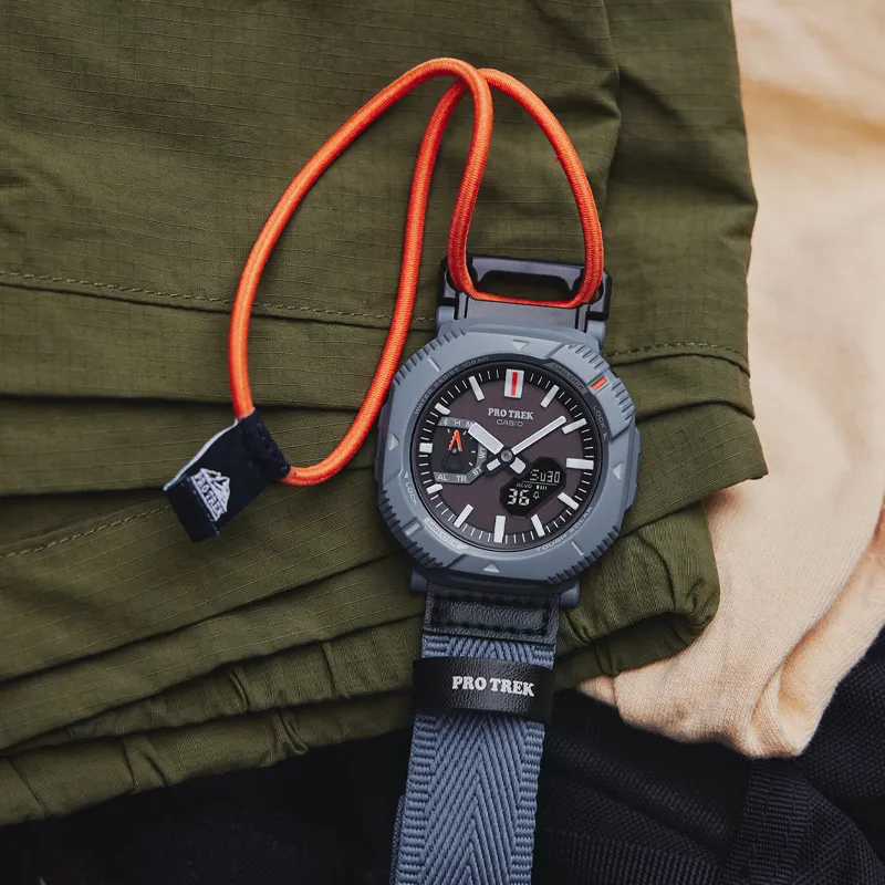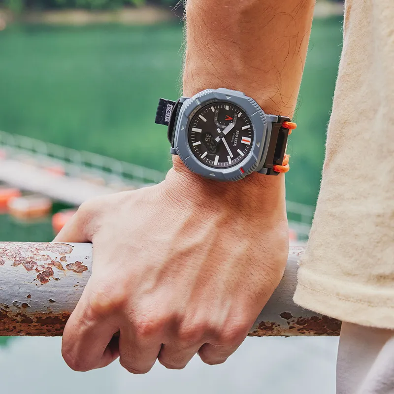 CASIO PRO TREK Коллекция Двухзадный дисплей Водонепроницаемый 100 м Солнечный кварцевый механизм Тканевый ремешок