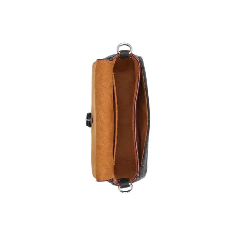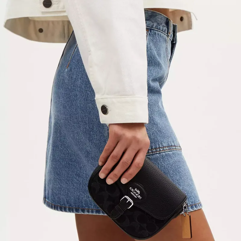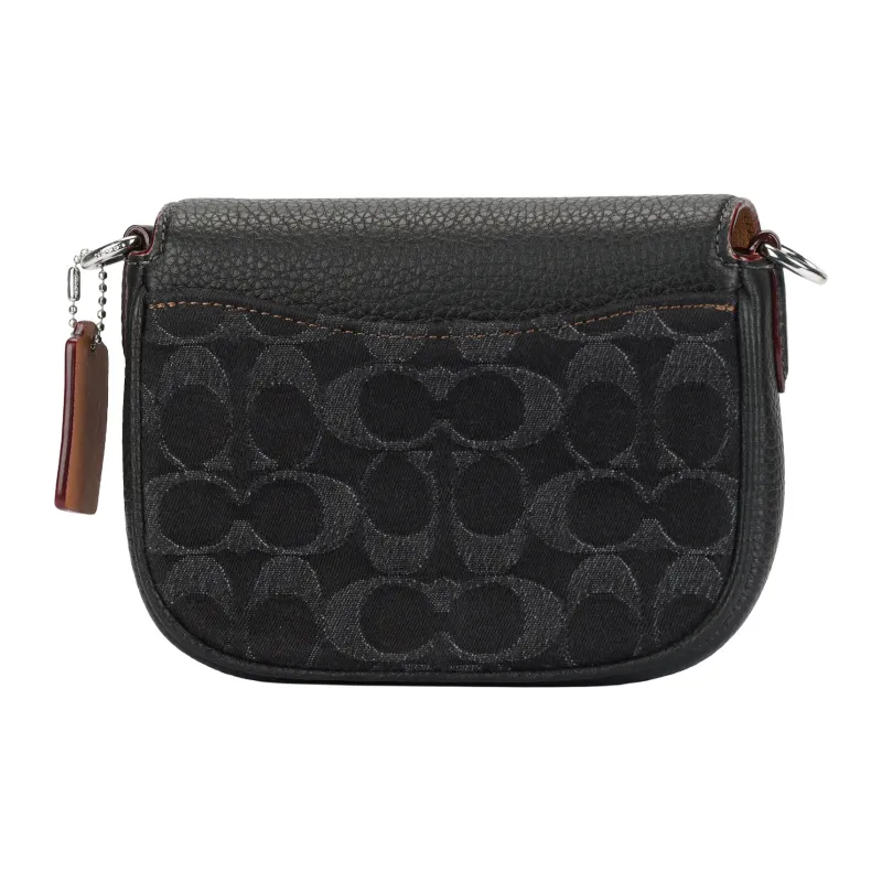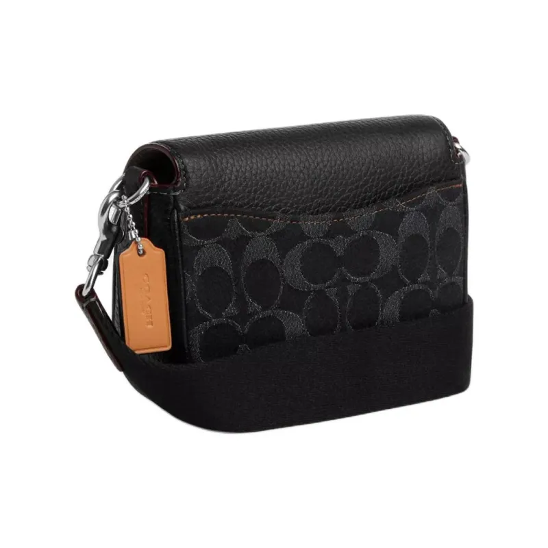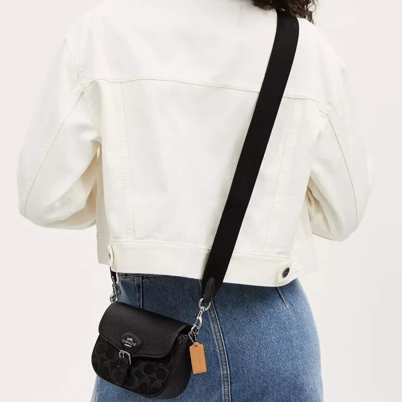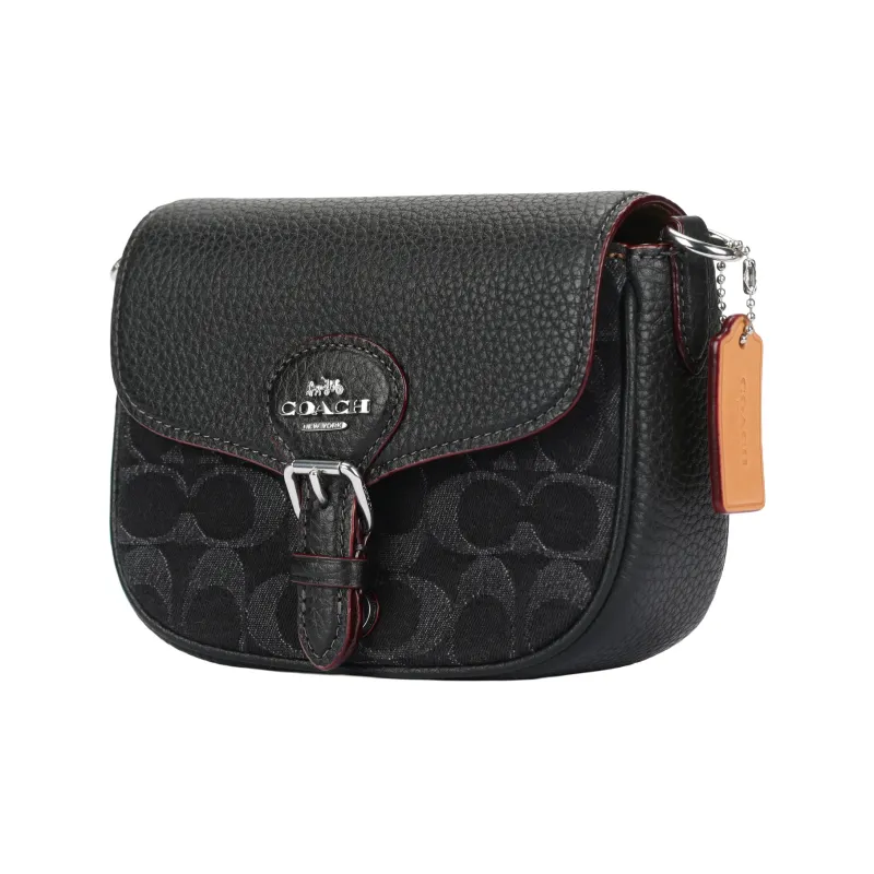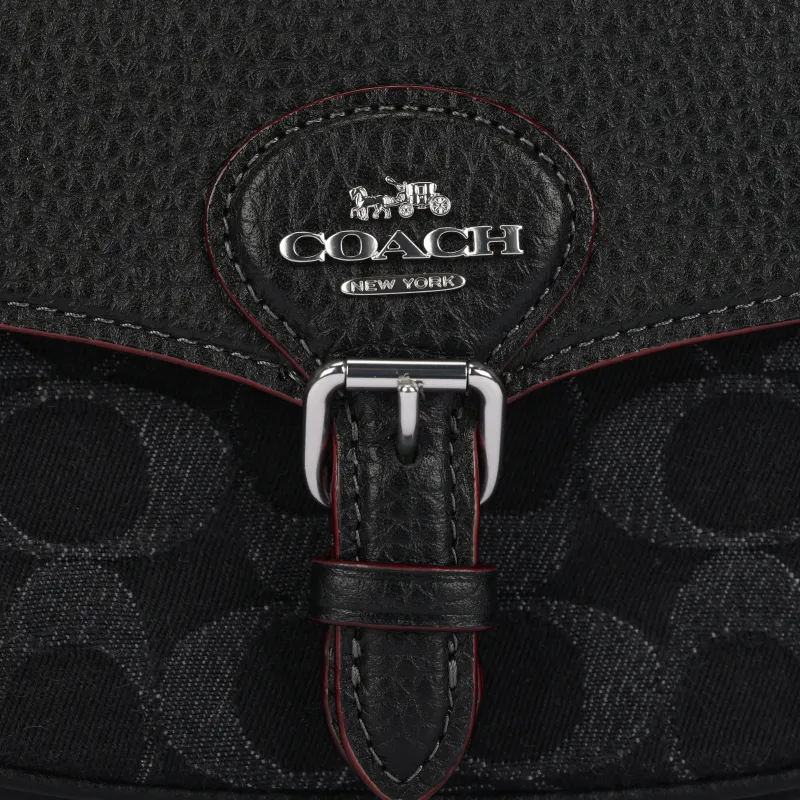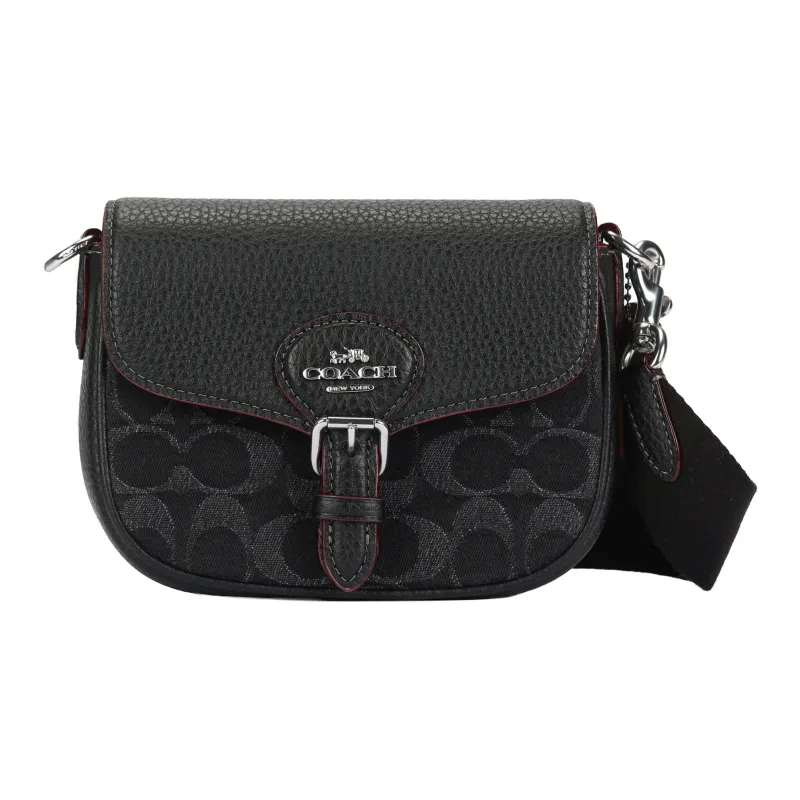 COACH - COACH Amelia Деним с мягкой текстурой крупнозернистая кожа Сумка через плечо Маленькая Женская Черная и Серебряная