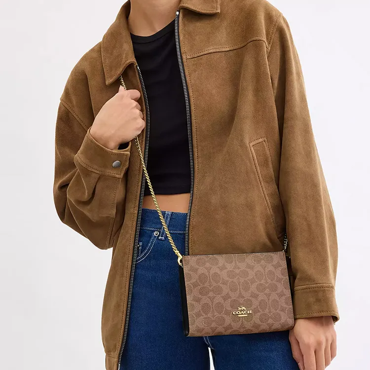 COACH Slim Crossbody Покрытый холст Сумка через плечо Маленькая Женская Коричневая и Черная
