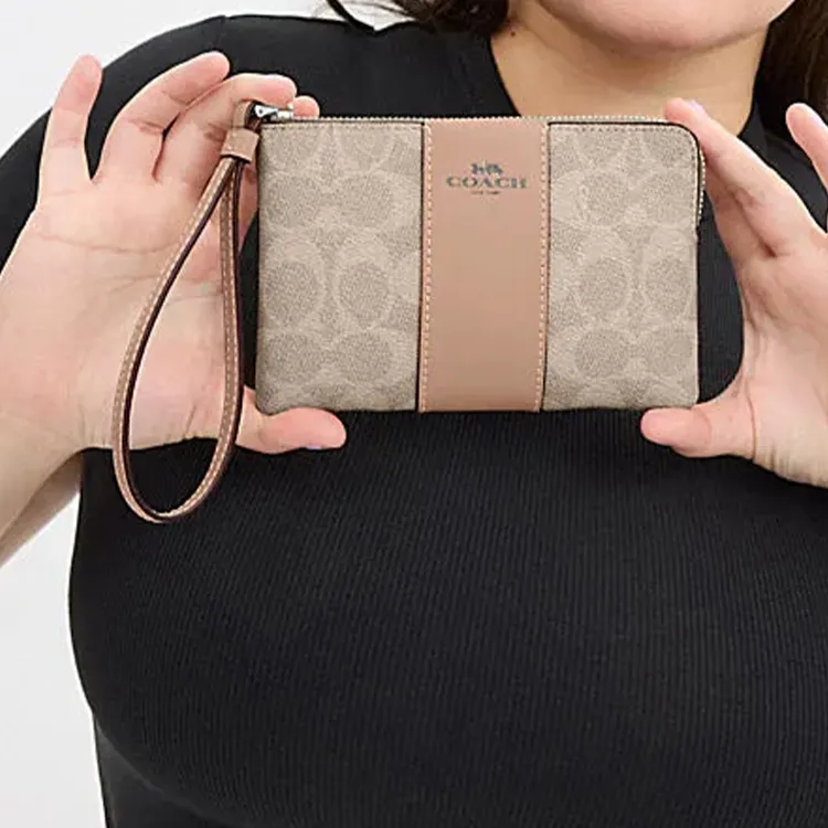 COACH Corner Zip Искусственная кожа Спилок коровья кожа Обхват запястья Сумка-клатч Маленький Женский Тауповый