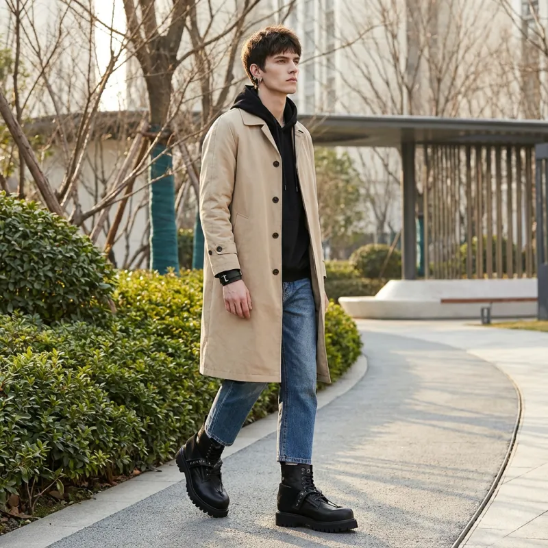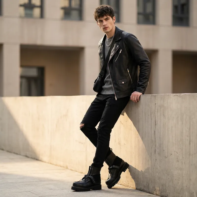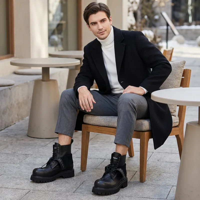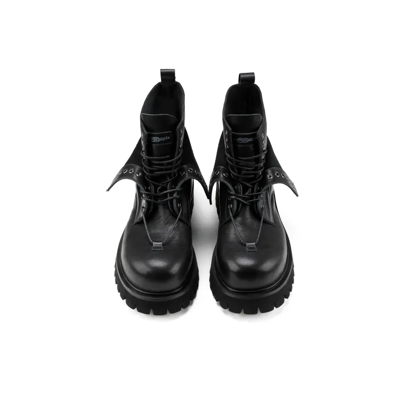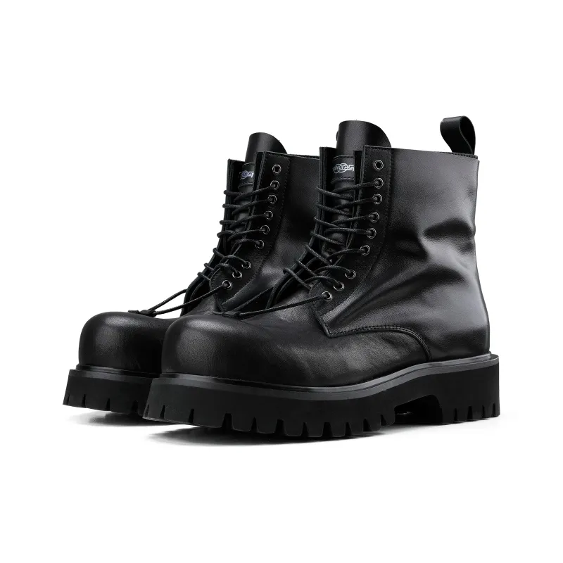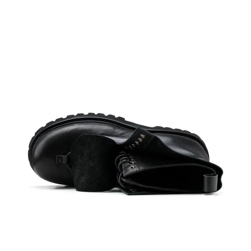 HANQIAORIJI - HANQIAORIJI Future Series Коровья кожа Короткий ботинок Мартин Унисекс Черный